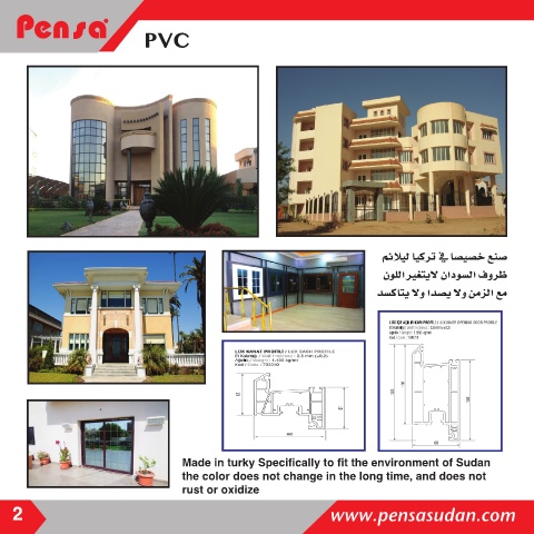 PVC مئلايل ايكرت في اص�يص�خ عنص� نوللا يرغتيلا نادوص�لا فورظ دص�كاتي لاو ادص�ي لاو نمزلا عم Made in turky Specifically to fit the environment of Sudan the color does not change in the long time, and does not rust or oxidize 2 www.pensasudan.com